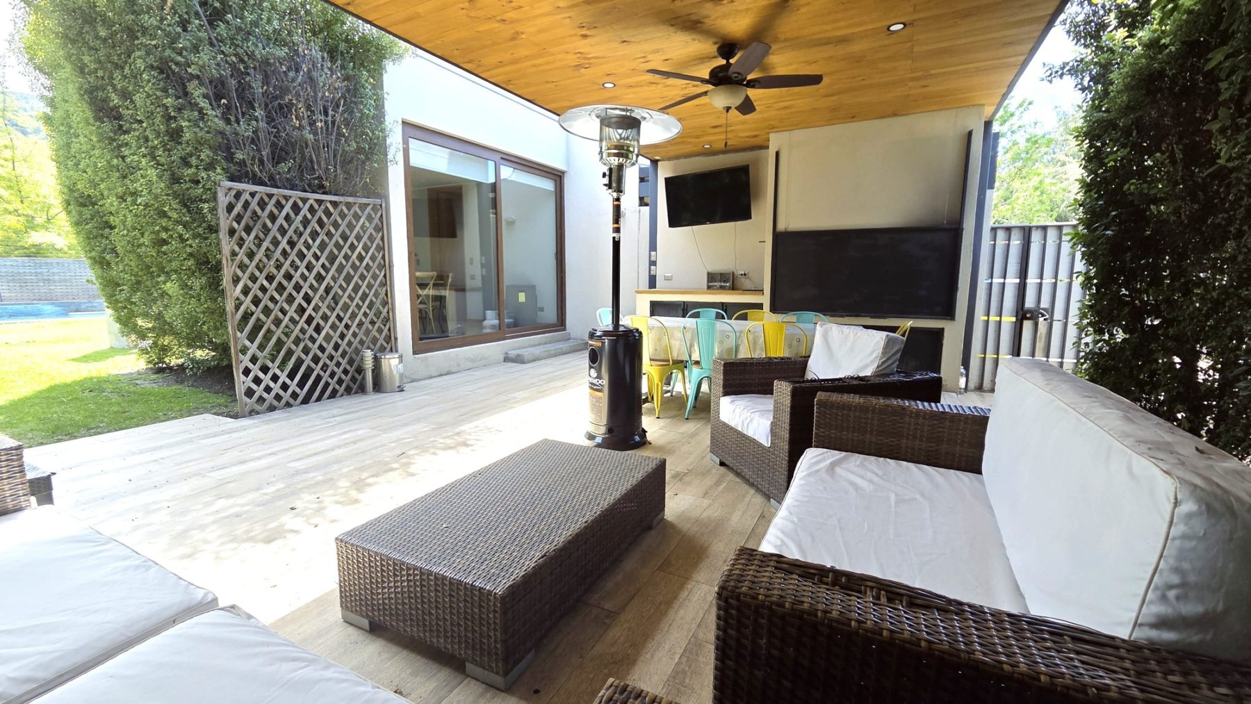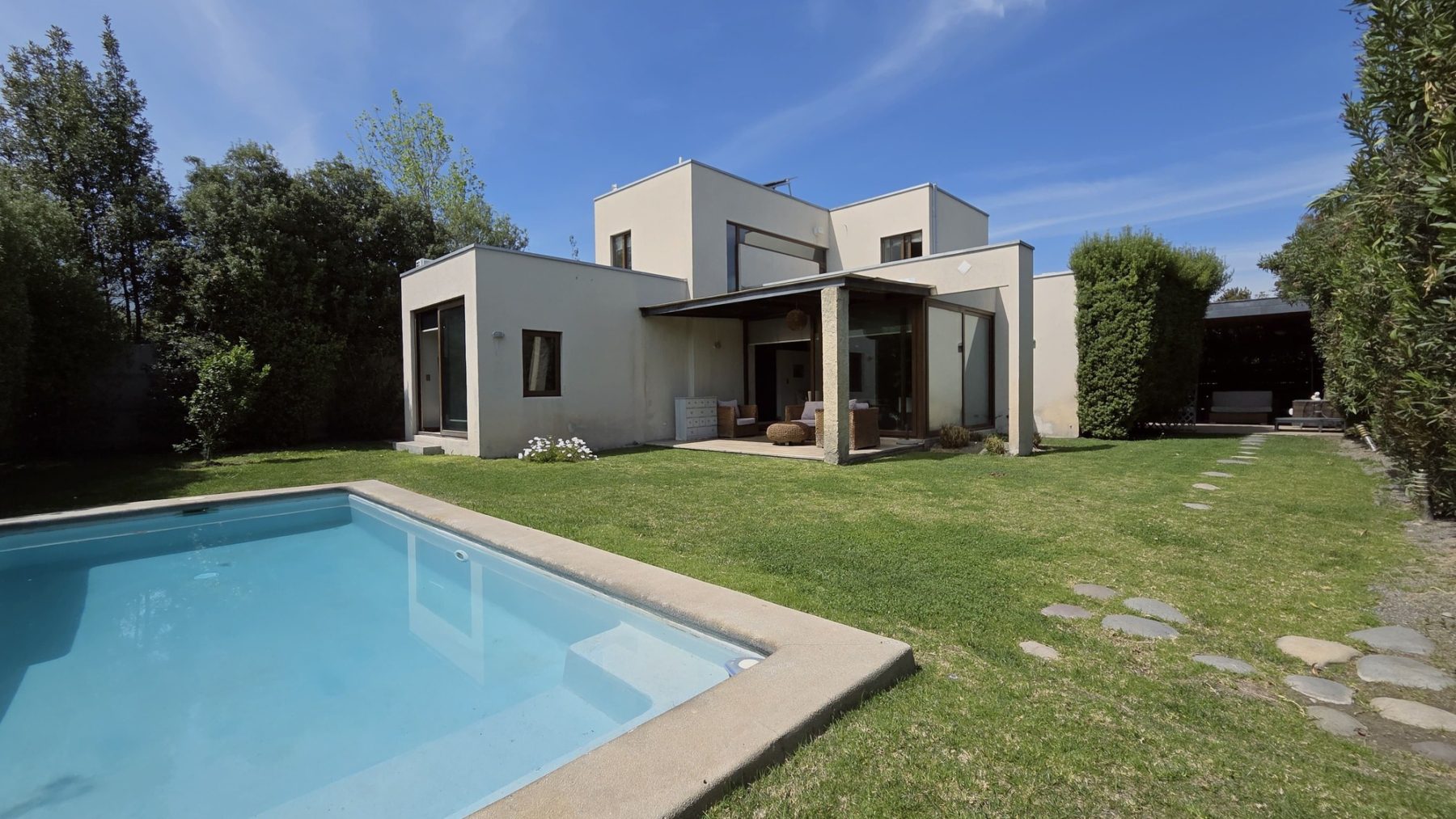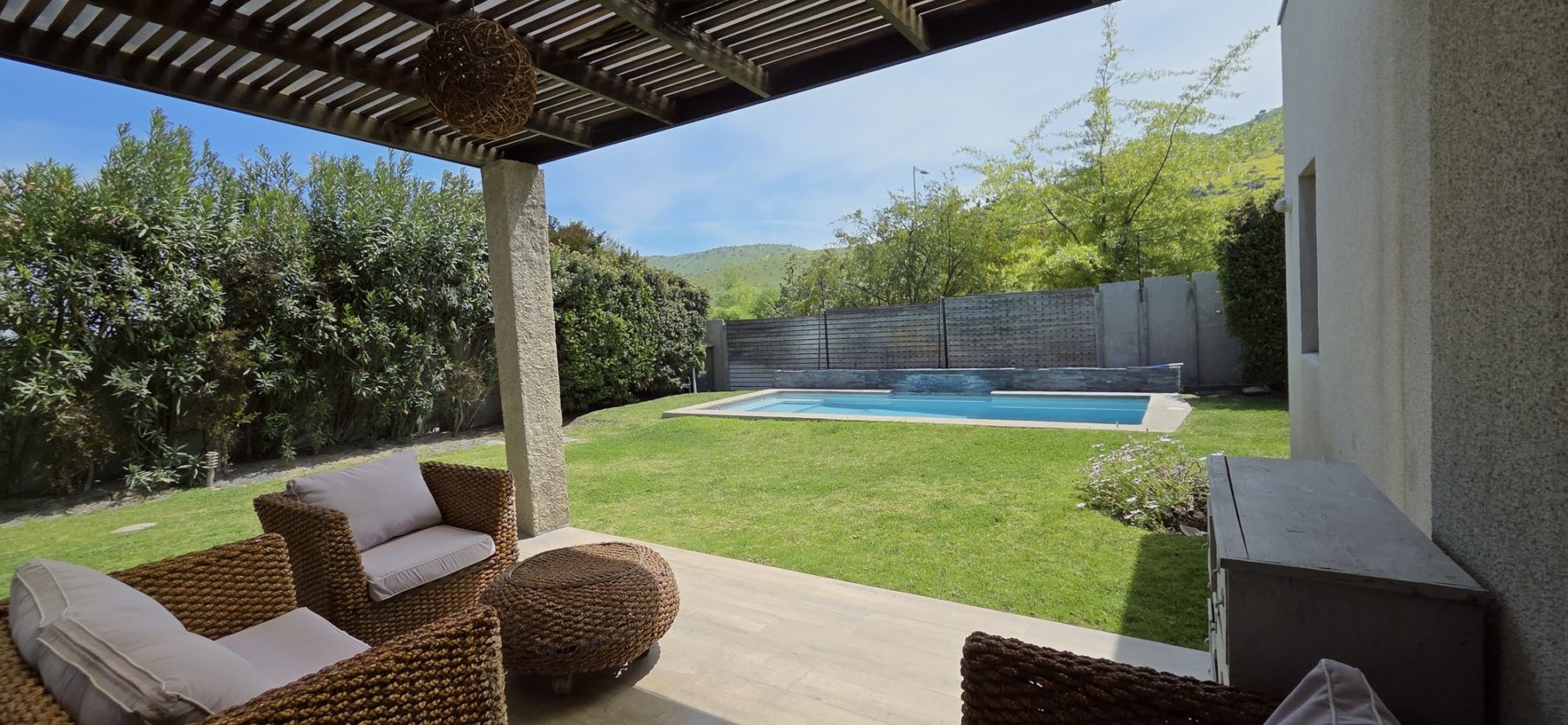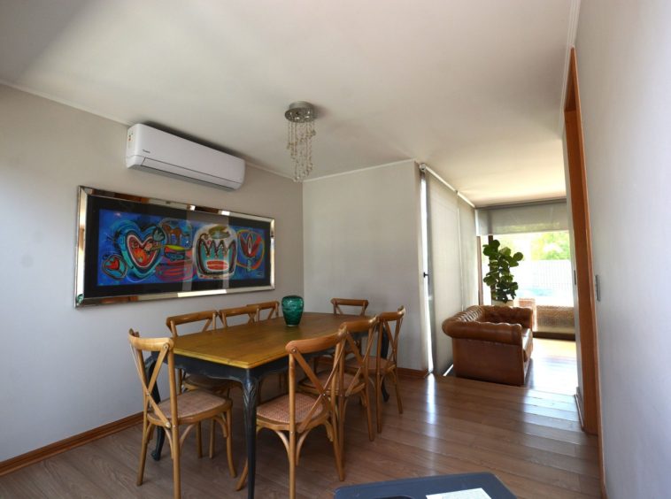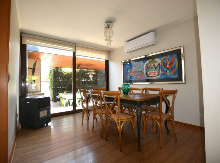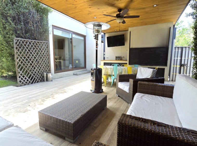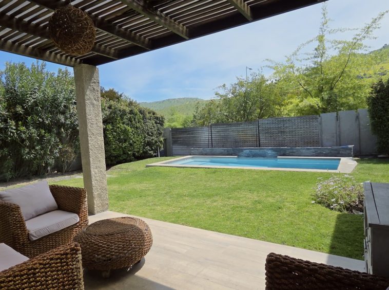 El exterior ofrece un agradable jardín formado, piscina y un amplio quincho techado, diseñado como un verdadero espacio de encuentro con comedor y living exterior, perfecto para disfrutar con familia y amigos durante todo el año.