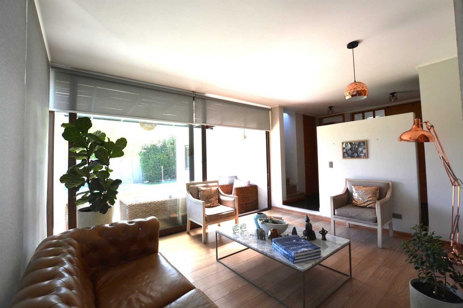 Living con vista hacia la terraza y piscina