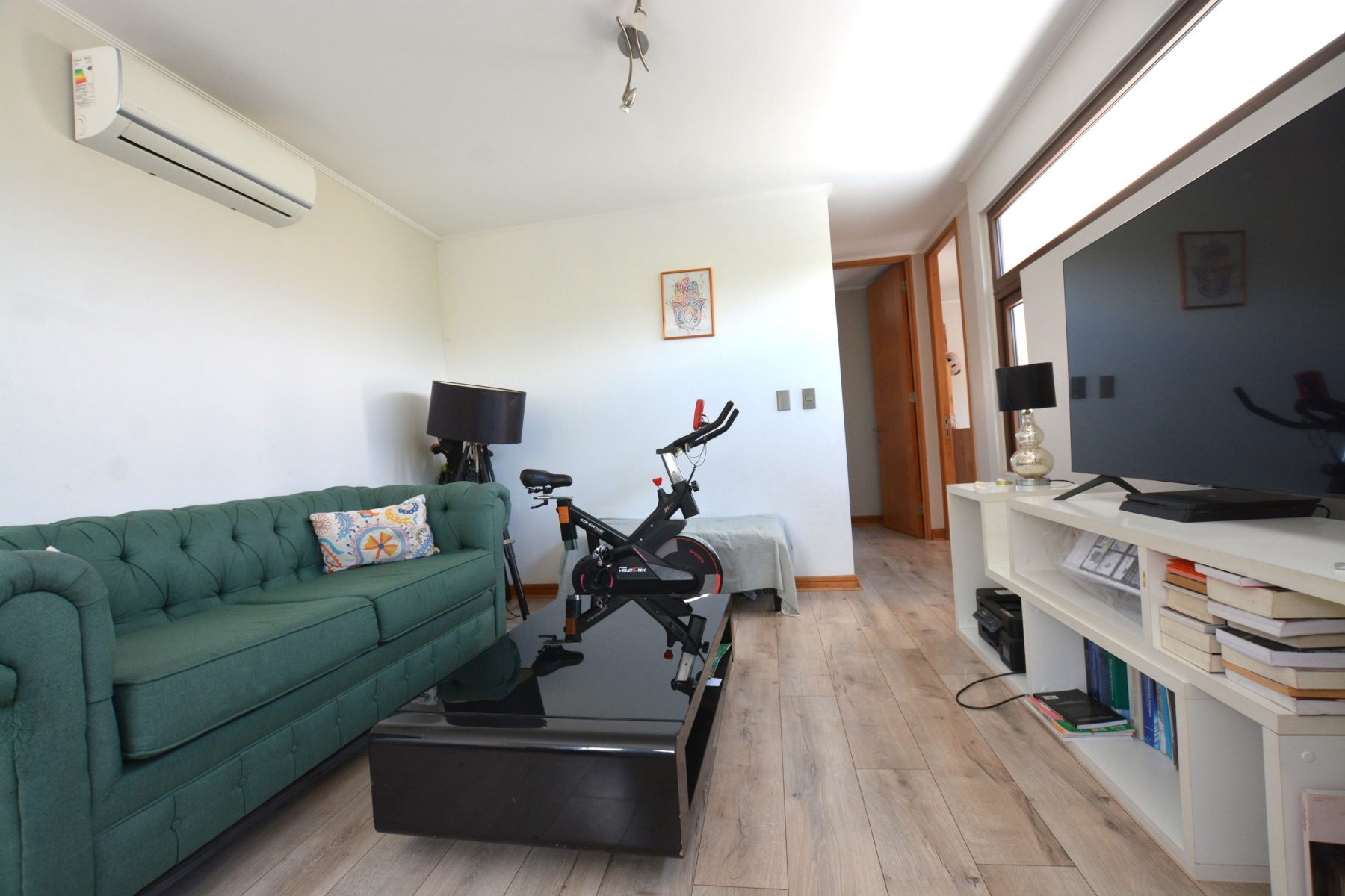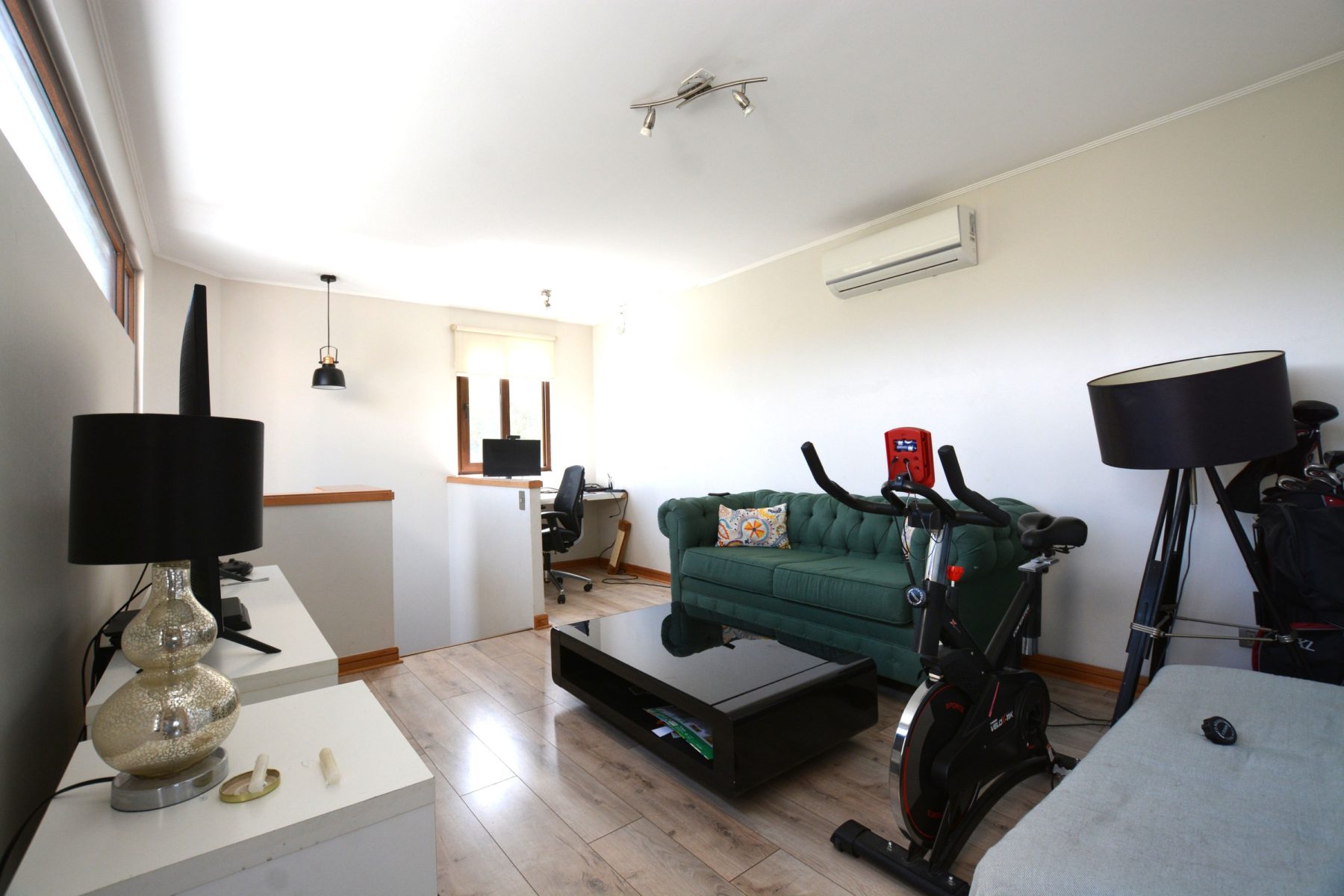 Sala de estar familiar con espacio para escritorio
