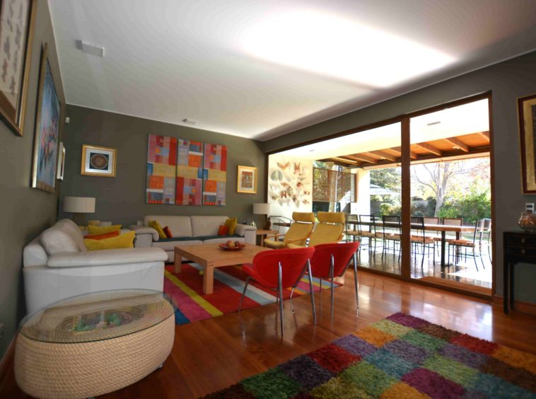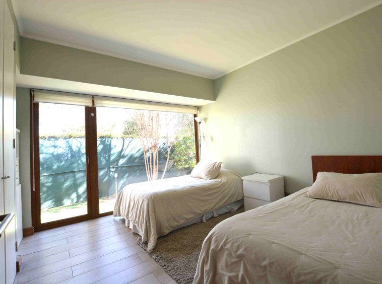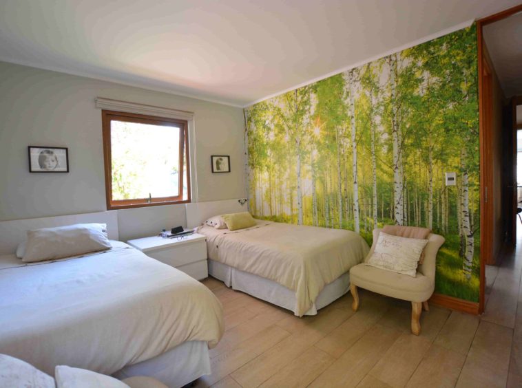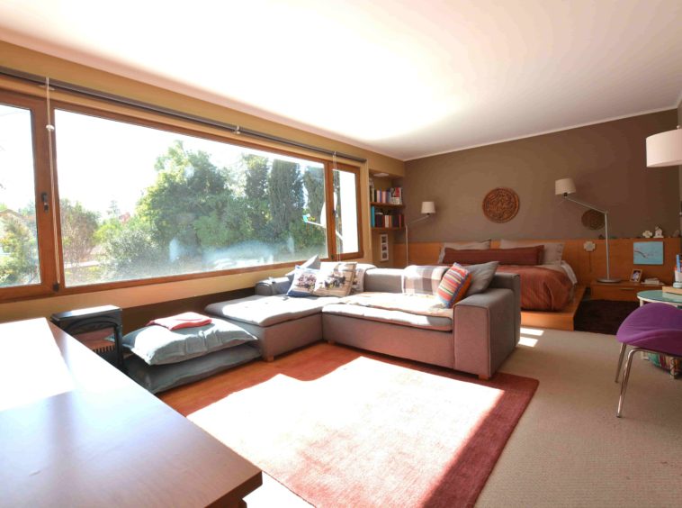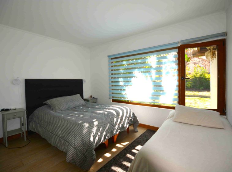 El sector de dormitorios está separado por una puerta de madera, dando paso a una acogedora sala de estar con salida al patio lateral. En esta área se ubican tres dormitorios, uno de ellos en suite, mientras que los otros comparten un baño.